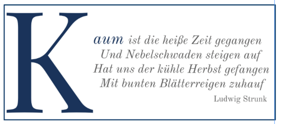 der Herbst steht vor der Tür. Laut Kalender war der Sommer am 21. September zu Ende. Im frühen Herbst wollen wir uns wieder zum Kaffeetrinken in der Paul-Gerhardt-Kirche um 15:00 Uhr begegnen, und einen schönen Nachmittag verbringen.