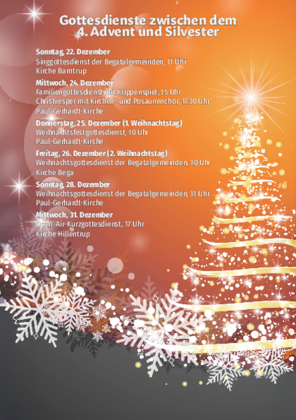 Die Kirchengemeinde lädt zu besonderen Gottesdiensten zwischen dem 4. Advent und Silvester ein: